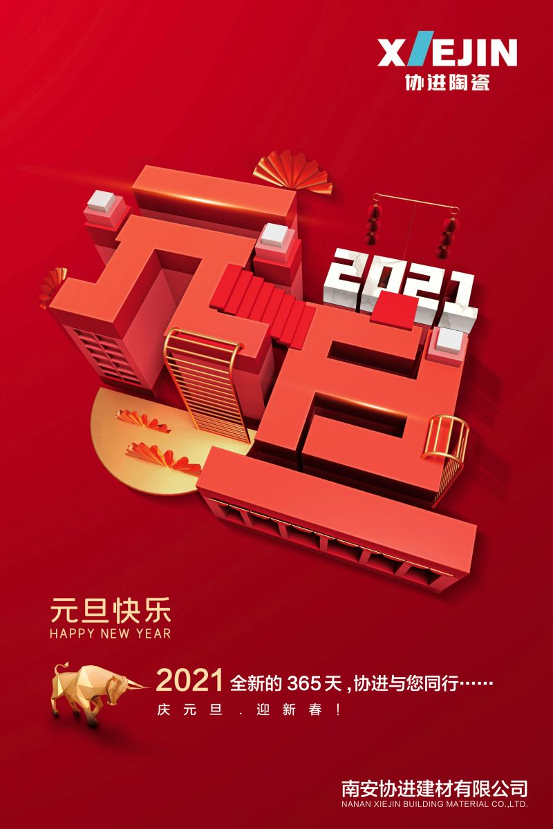 值此2021年元旦到來之際,協(xié)進(jìn)陶瓷祝全體員工、新老客戶、全國人民新年快樂、身體健康、萬事如意、闔家幸福!