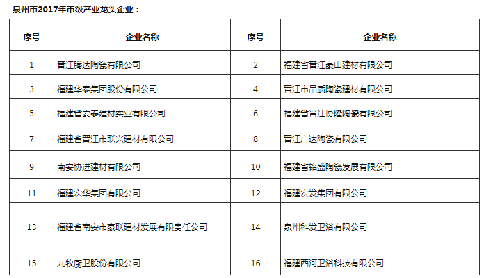 其中,建材家居行業(yè)中,協(xié)進、九牧等12家福建陶衛(wèi)企業(yè)進入2021年泉市級產業(yè)龍頭企業(yè)項目名單。
