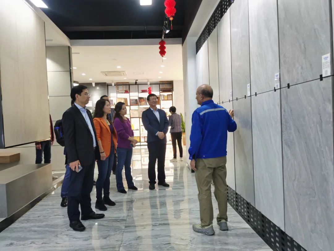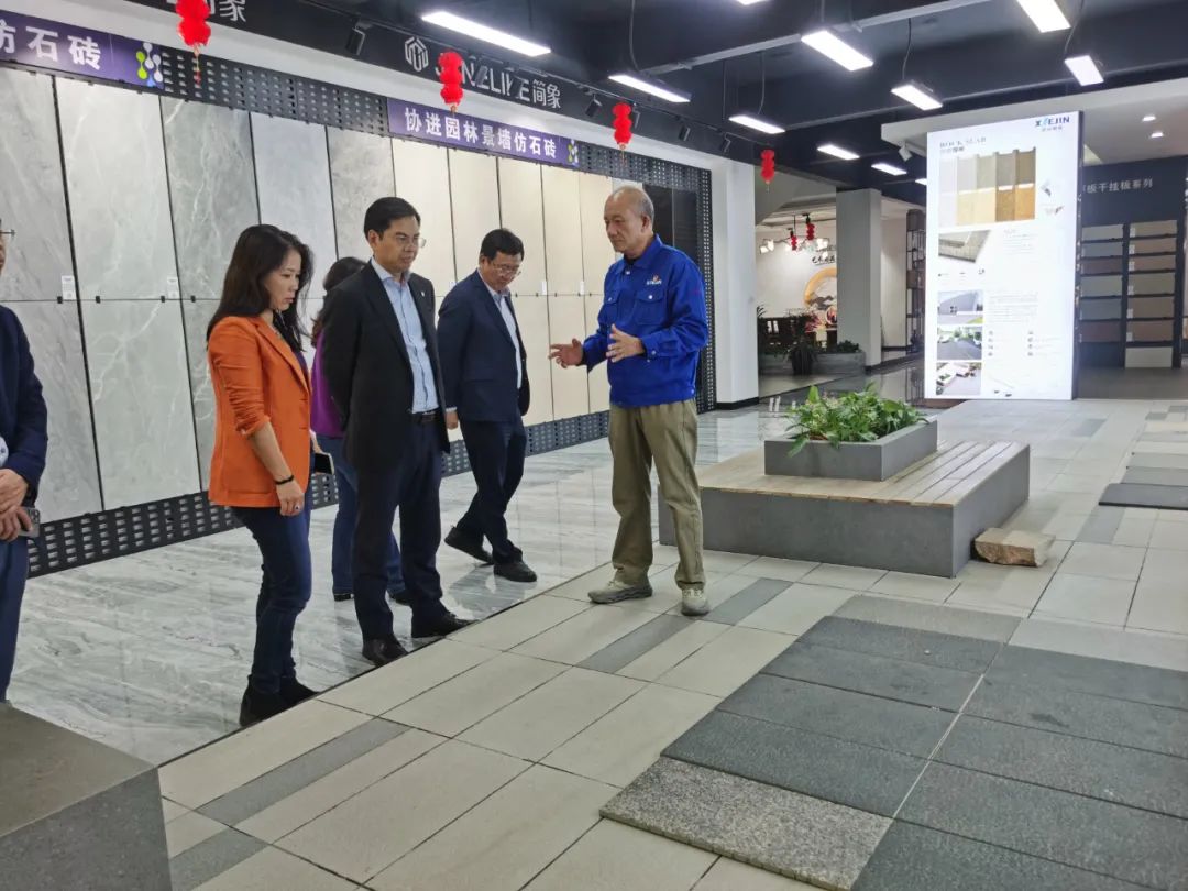 周會長一行在南安協(xié)進公司董事長王家助的介紹下一邊了解企業(yè)30年來的發(fā)展歷程,一邊參觀產(chǎn)品展廳,對協(xié)進陶瓷在大規(guī)格薄板、大板、陶瓷薄板復合保溫一體板、地鋪石等綠色節(jié)能新產(chǎn)品的研發(fā)生產(chǎn)深入了解。希望利用協(xié)會在建筑開發(fā)產(chǎn)業(yè)鏈上的優(yōu)勢和資源,通過此次的商務考察活動,尋求開拓加拿大和北美市場的合作。