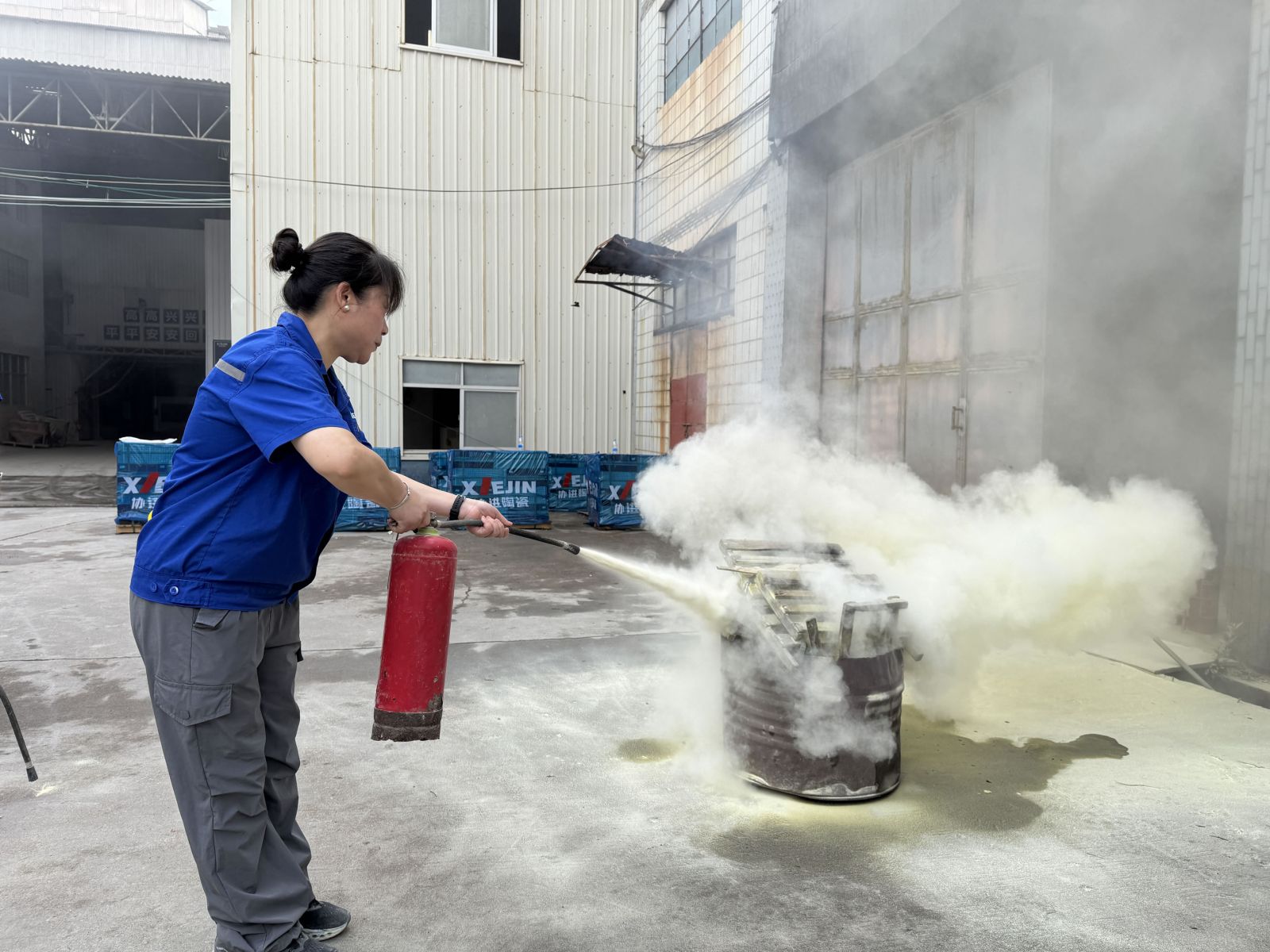 6月19日協(xié)進陶瓷舉行安全生產(chǎn)應(yīng)急消防演練