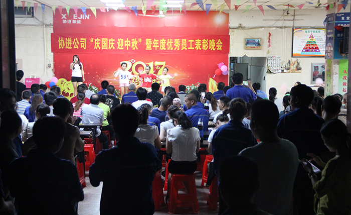 9月29日晚,金秋送爽,星空璀璨,協進廠區,華燈輝映,彩旗飄揚。為了慶祝即將到來的中華人民共和國68周年華誕,喜迎中秋佳節,同時為了表彰先進、樹立榜樣,鼓勵“人人爭當模范”的工作激情,弘揚“正品、精工、盡美、至善”的企業理念,倡導“攜手創輝煌,創新求卓越”的協進精神,協進陶瓷2017年歡度國慶喜迎中秋暨優秀員工表彰文娛晚會在公司禮堂隆重舉行。
